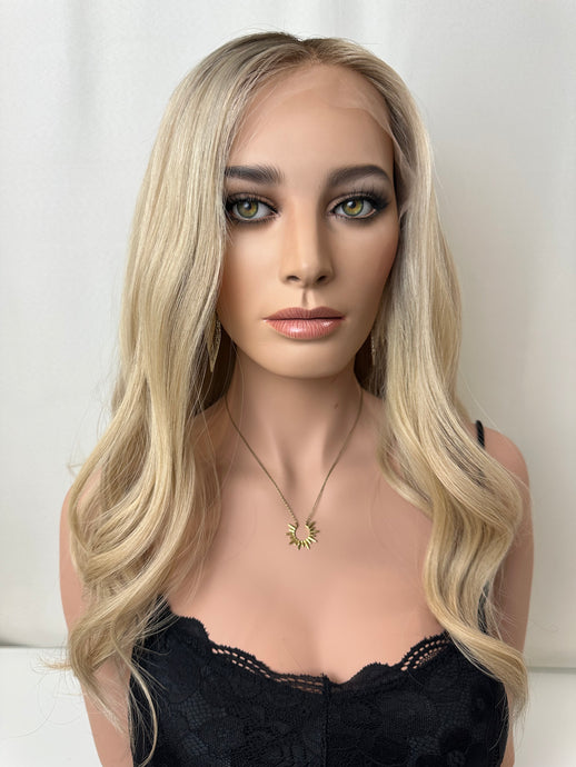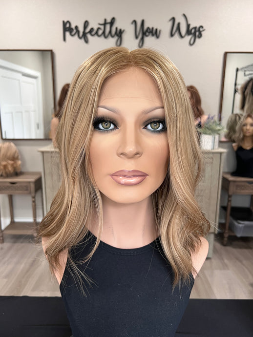 Blakely is a 16" length with face frame, small cap made with premium Brazilian quality human hair