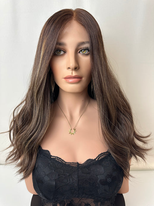 August is a 20" length, large cap made with premium Brazilian quality human hair
