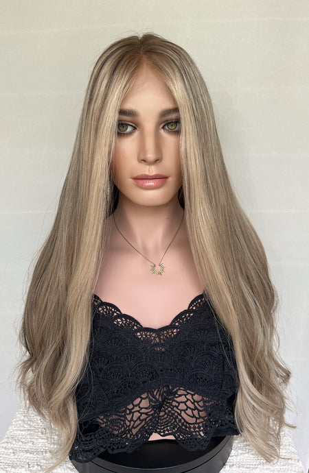 Violet is a 25" long layered length, 10x11 lace top whopper style topper made with premium Brazilian quality human hair