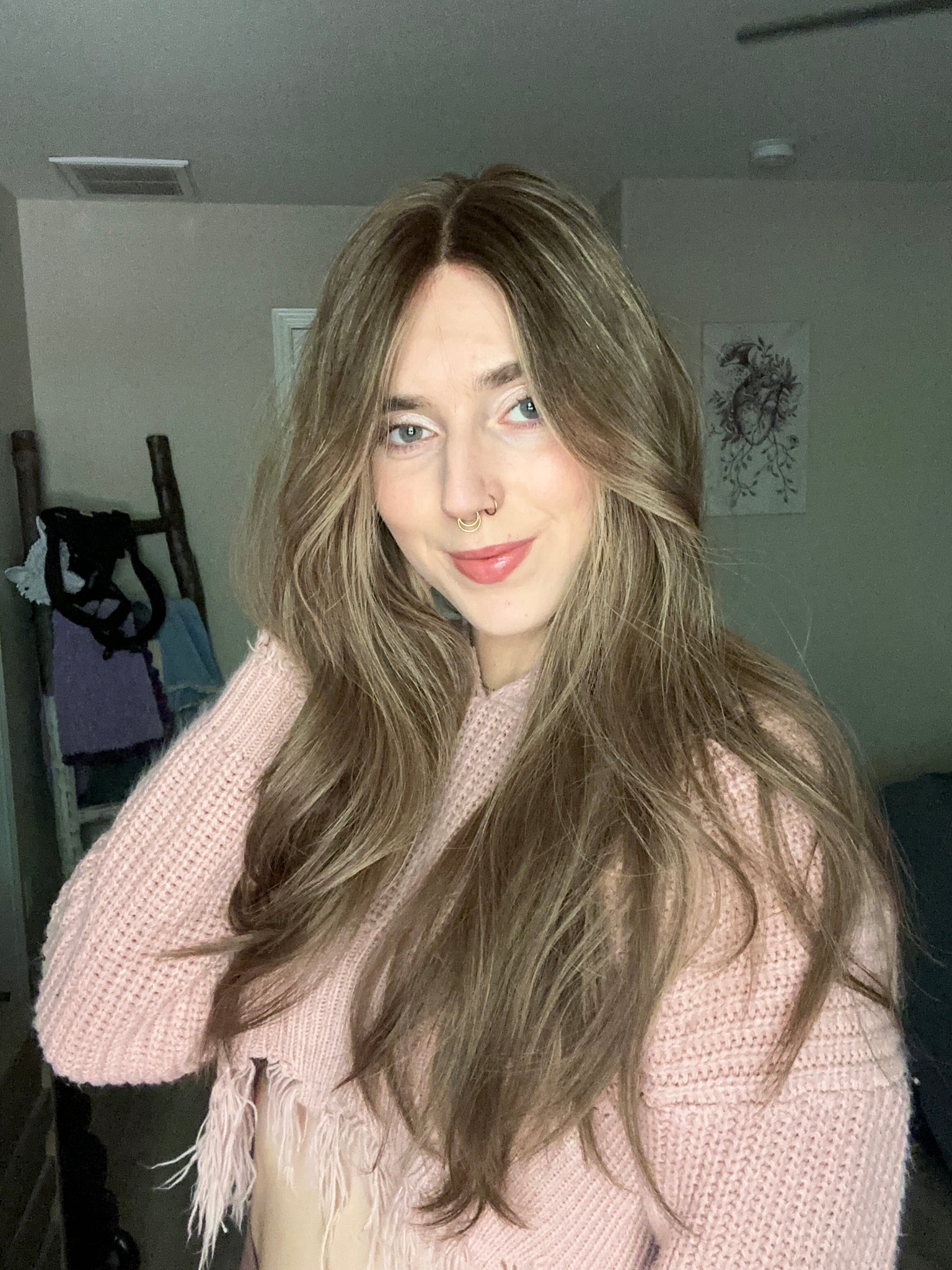 Her cap has premium Swiss lace and can be parted in multiple directions