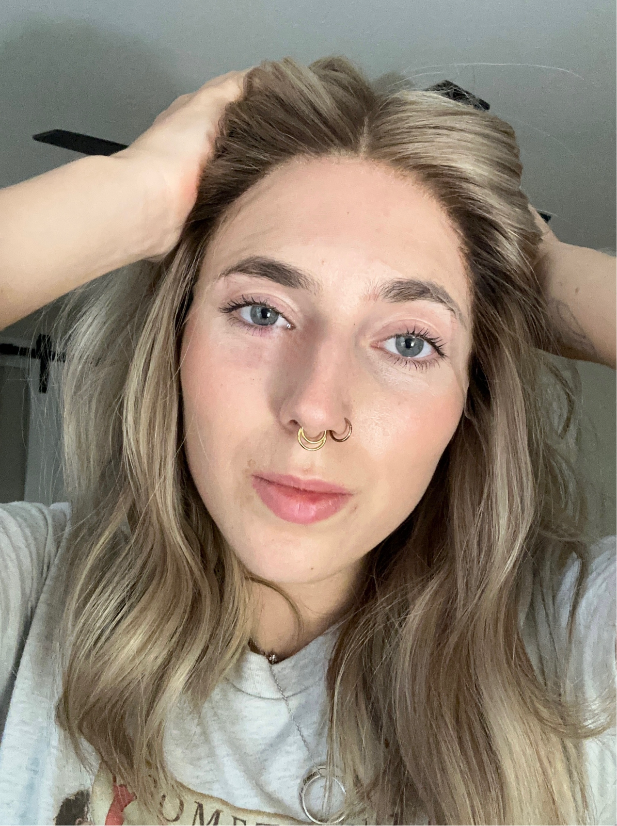 Short neutral root with dimensional warm lowlights