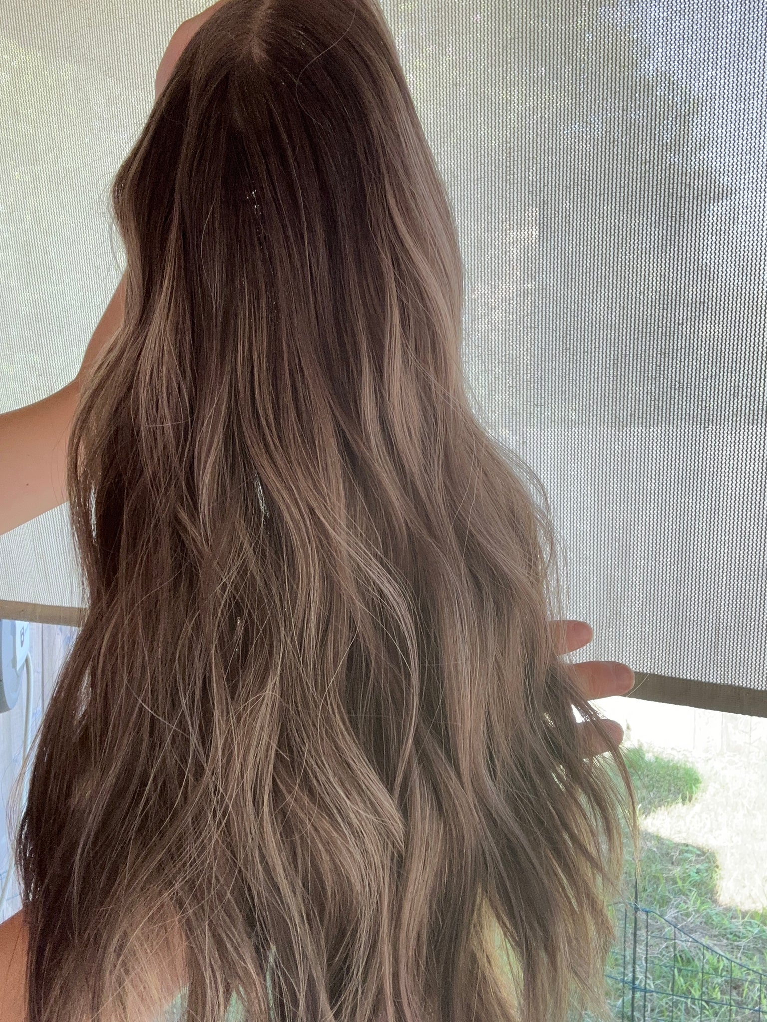 Bridget is a neutral brunette leaning towards ash tones with gorgeous blonde highlights